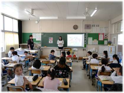4月21日(月)3年生 外国語活動の授業の様子 公開日 2025/04/21 更新日 2025/04/21 各学年から 3年2組の外国語活動の様子です。教科書にある国旗を見て、どの国のものかを出し合っていました。国名に詳しい子どもが多く、ALTや担任もびっくりです。どんどん英語で発話を行い、楽しみながら学習を進めています。 3年生 5678組