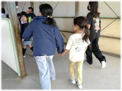 5月7日(水)なかよしウォークラリー4 公開日 2025/05/07 更新日 2025/05/07 学校の特色ある活動 なかよしウォークラリーでは、なかよし遠足に向けて、「班のみんなでまとまって歩く」ことも目標にしています。今日も、班長を中心に6年生が「みんな、いるかな?」「次に行くから、ここに一度集まって!」など、班のみんなに呼びかけたり、全員がそろっているかを確認したりする姿が見られました。また、低学年がはぐれないように、上学年がやさしく手をつなぎながら歩く姿もあちこちで見られました。 1年生 2年生 3年生 4年生 5年生 6年生 5678組 特色ある活動