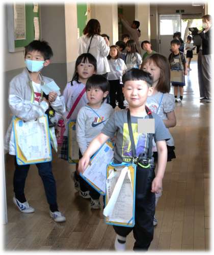 5月8日(木)1・2年生 生活科「学校探検」の様子1 公開日 2025/05/08 更新日 2025/05/08 各学年から 3・4校時、2年生が1年生をリードしながら学校探検を行っていました。職員室や校長室に入るときには、「2年〇組の〇〇です。学校探検で来ました。失礼します」とお手本を示す2年生です。 1年生 2年生 5678組