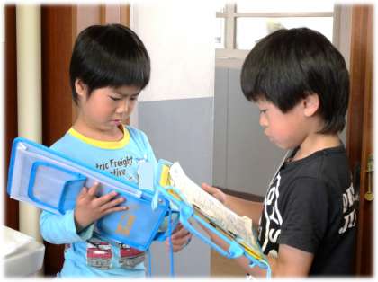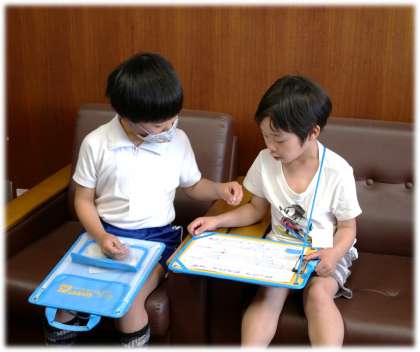 「正解!シールを張るね」と、やさしく1年生に話しかける姿に、1つ学年が上がり、頼もしくなった2年生を感じます。2年生のおかげで、1年生もにこにこでしたね。