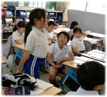 (写真下)3年2組 算数科「わり算」 60÷3の解き方を考え合っています。