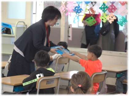 1年生にとっては、待ちに待った「学習用タブレット」です。これから、自分や仲間と一緒に学びを豊かにしていくために、たくさん活用して「相棒」にしてほしいと思います。そして、そのために豊田市が貸してくれているものであることを忘れないよう、学習用タブレット授与式を行い、校長から一人一人に「大切に使いましょう」と手渡しました。受け取る1年生の凛々しい瞳や「はい」という返事に、これからいろいろな経験を積みながら、活用していける使い手になっていけるように、保護者の方とも連携して成長を支えていきたいと強く感じました。