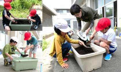 5月15日(木)5・6・7・8組 今日の授業の様子 公開日 2025/05/15 更新日 2025/05/15 各学年から 夏野菜の苗授与式を行い、苗植えを行いました。自分の選んだ野菜の苗。収穫までの間、心をかけながら、野菜の生育を楽しんでお世話をしていくことでしょう。 5678組