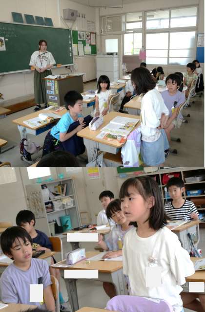 (写真下)2年3組 道徳科:自分の考えをしっかりもち、進んで仲間にも伝えようとしている姿がすてきです。その友達の考えをしっかり聞こうとする姿もまたすてきです。
