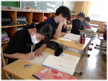 5月15日(木)5年生 今日の授業の様子 公開日 2025/05/15 更新日 2025/05/15 各学年から (写真上・中)5年1組 国語科:単元「インターネットは冒険だ」の序論部分の要約に取り組んでいます。「どの言葉が大切かなあ」「絶対必要な部分は・・・」など、自分なりに考えながら書き進めていました。 (写真下)5年2組 社会科:米の産地となっている場所にはどのような特徴があるのか、まずは自分なりの考えを出し合っていました。 5年生