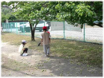 どんぐりやバッタ、梅の実など、公園内で自然にも親しむ1年生です。1年生の笑顔があふれる学習になりました。