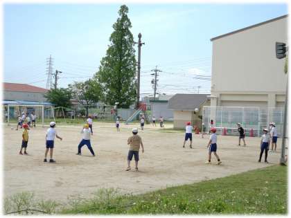 5月22日(木)休み時間の様子 公開日 2025/05/22 更新日 2025/05/22 各学年から ふれあいタイム(午後の長い休み時間)、運動場で元気いっぱい遊ぶ子どもたちの姿が見られました。午前中の曇り空から一転、日差しも出て、気温もぐんぐん上がってきました。熱中症予防のため、帽子をしっかりかぶって活動しています。 昇降口や職員室前には、暑さ指数を示す掲示を行い、子どもたち自身も体感だけではなく、数値からも予防行動ができるように取り組んでいます。
