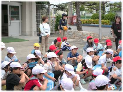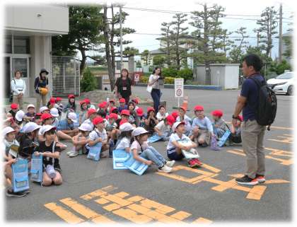 生活科で町探検に出かける2年生です。安全に気を付けながら、たくさんの発見や「なぜだろう」を見つけてきたいと気合い十分の2年生です。