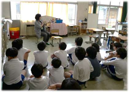 こちらは5・6・7・8組の読み聞かせの様子です。8組の教室でみんなで読み聞かせの時間を楽しみました。