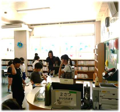 初日の今日は、元気タイム・ふれあいタイムのどちらも図書館で本を選ぶ駒場っ子の姿が多く見られました。この期間は、通常2冊のところ、3冊まで貸出冊数を増えることで、「どの本にしようかな」と、楽しみながら本を選んでいる子どもたちです。借りた冊数に応じて、図書委員からスタンプを押してもらい、こちらもカードをうれしそうにながめる子どもたちでした。