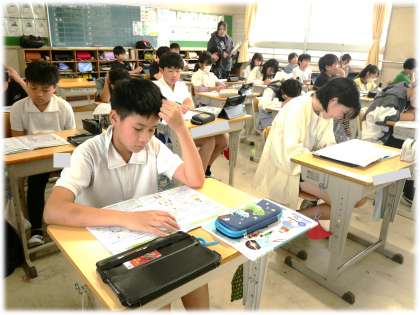 6月10日(火)6年生 今日の授業の様子 公開日 2025/06/10 更新日 2025/06/10 各学年から (写真上)6年1組 家庭科:テストに取り組んでいます。学んだことの理解度を自分自身で確かめる機会にしています。 (写真中)6年2組 理科:理科ノートをまとめながら、学習したことを再度確認しています。 (写真下)6年3組 算数科:分数マスターを目指して、自分のペースで問題をどんどん解いています。困ったときには、教科担任や友達に質問し、解決を図っています。 6年生