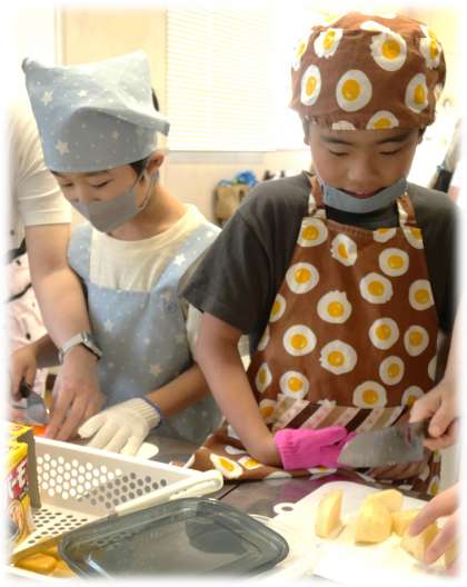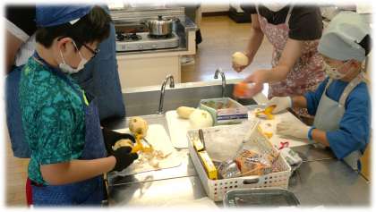 6月17日(火)5・6・7・8組 学校公開の授業の様子 公開日 2025/06/17 更新日 2025/06/17 各学年から 自分たちで育て、収穫したジャガイモを使って、お家の方と一緒にカレーライスづくりに取り組みました。ジャガイモやニンジンの皮むきをピーラーで行ったり、一口大に野菜を包丁で切ったりしました。安全に気を付けながら、楽しく調理をしています。 おいしくて、みんなの思いが隠し味となった大満足のカレーライスが完成しましたね。 5678組