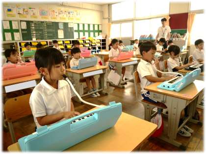 6月25日(水)1年生 鍵盤ハーモニカ講習会の様子1