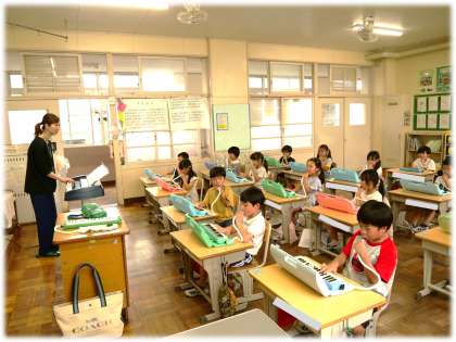 6月25日(水)1年生 鍵盤ハーモニカ講習会の様子2 公開日 2025/06/25 更新日 2025/06/25 各学年から こちらは1年2組の様子です。 実際に、「幸せなら手をたたこう」のリズムで、「ドをならそう」の場面で「ドド」を息を合わせて、音を響かせていました。みんなのリズムがばっちり合ったすてきな瞬間でした。 1年生