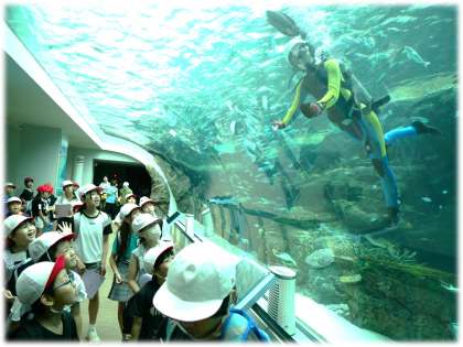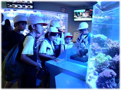 6月27日(金)なかよし遠足5 公開日 2025/06/27 更新日 2025/06/27 学校行事 館内は、もちろん冷房も効いていて、そして海の世界を感じられて、快適です。 「あんなところに、ダイバーさんがいる!」と、手を振り、あいさつをする駒場っ子です。その姿が微笑ましく感じます。 1年生 2年生 3年生 4年生 5年生 6年生 5678組 行事
