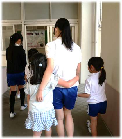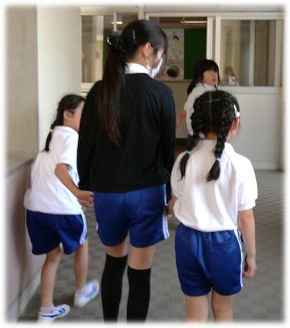 6月30日(月)大好きだよ、6年生! 公開日 2025/06/30 更新日 2025/06/30 各学年から 休み時間に、大好きな6年生と一緒に過ごす1年生がいます。廊下を一緒に歩くのも、楽しいひとときのようです。「大好き」の気持ちが、手を握り合ったり、寄り添ったりしている姿から感じられますね。 1年生 6年生