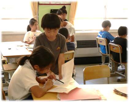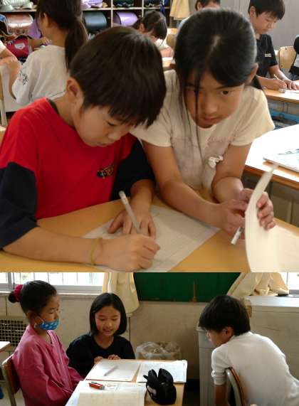 1・2組ともに、国語科の単元「心が動いたことを詩で表そう」の学習を進めています。生活の中で気づいたことや感じたことを自分なりの表現で工夫して書き表しています。書く活動の中で自然と友達に表現について自分の考えを伝え、相談する姿もあちこちで見られました。この学習を生かして、ぜひ夏休みにも詩にチャレンジしてみるとすてきですね。