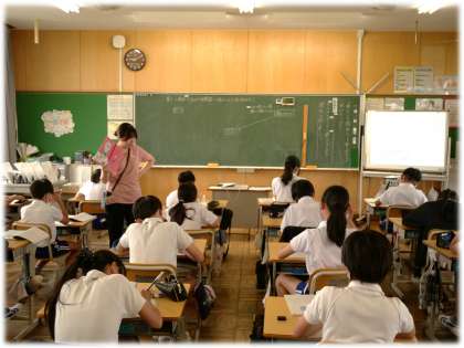 (写真中)6年2組 国語科:文字の移り変わりについて学んでいます。平仮名と片仮名の成り立ちの場面では、そうだったんだあと、なりほどの心情を表すようなつぶやきが聞こえてきました。