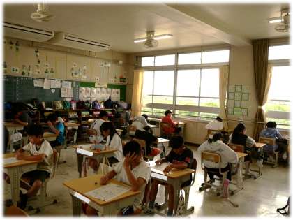 (写真下)6年3組 理科:単元のまとめとして、テストに臨んでいます。問題に真剣に向き合っていますね。
