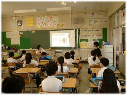 (写真下)4年2組 総合的な学習の時間:夏休みに取り組んだ環境に配慮した生活の工夫の発表を行っていました。一人一人の意識で取り組めることが多くあることに気付くことができる時間になりました。
