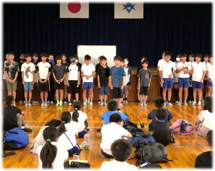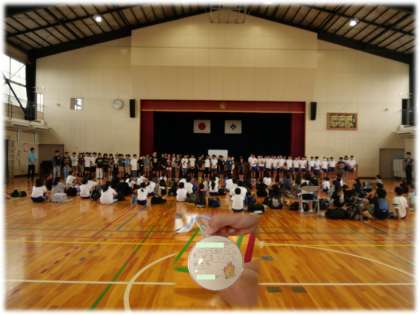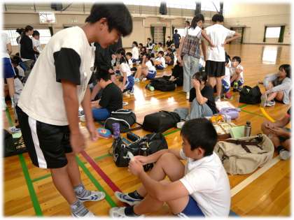 6年生から一人一人に手渡しされたネームタグ。5年生は早速自分の荷物に取り付けていました。6年生が応援し、見守ってくれているようで、安心できますね。