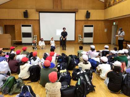入所式では、所員の方から「イノシシの掘った跡が見つかったり、鹿の鳴き声が聞こえたりするかもしれませんよ」というお話があり、自然に囲まれて過ごすこれからの時間に胸がはずみます。