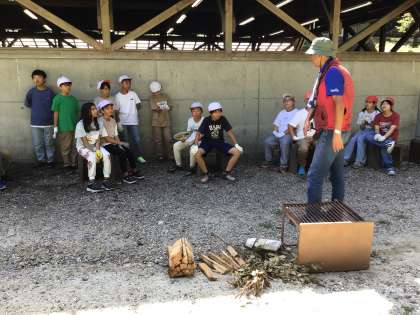 9月16日(火)5年生 最幸でBESTなキャンプを12 公開日 2025/09/16 更新日 2025/09/16 学校行事 所員の方からかまどの準備方法の説明を聞いています。 5年生 5678組 行事