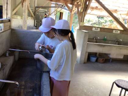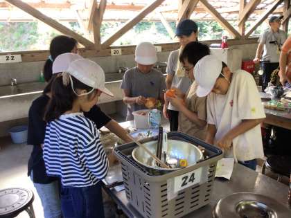 9月16日(火)5年生 最幸でBESTなキャンプを13 公開日 2025/09/16 更新日 2025/09/16 学校行事 カレーうどんの材料を切ったり、水の量を計ったりと、手際よく準備を進めています。事前の家庭科での実習が活かされていますね。 5年生 5678組 行事
