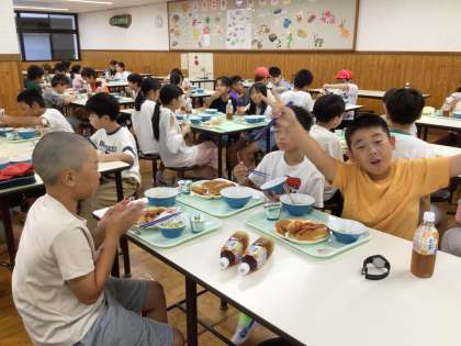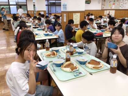 9月17日(水)5年生 最幸でBESTなキャンプを29 公開日 2025/09/17 更新日 2025/09/17 学校行事 仲間と一緒だと、おいしさも倍増です。 職員のみなさん、おいしい朝食をありがとうございました。 5年生 5678組 行事
