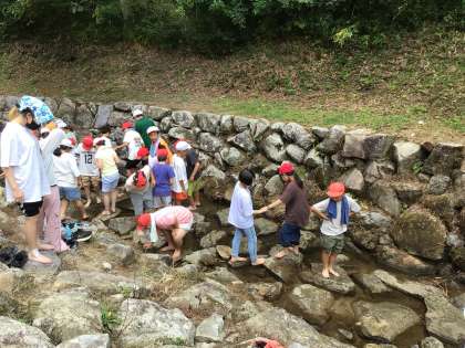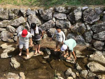 みんながしっかり考えて動いたことで生まれた時間を使って、沢遊びです。サワガニやカエル、小魚を見つけて喜ぶ5年生です。自然を満喫しました。
