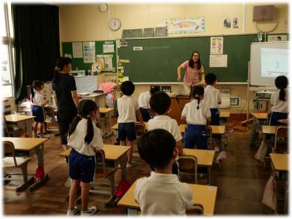 9月19日(金)1年生 今日の授業の様子 公開日 2025/09/19 更新日 2025/09/19 各学年から (写真上)1年1組 国語科:かぞえうたを読んで、気付いたことを発表し合っています。いろいろなものの数え方の秘密を見つける発見名人の1年生です。 (写真中・下)1年2組 学級活動:ALTと一緒に外国語の学習です。英語の歌を身振り手振りをつけて歌ったり、数を英語で言ったりします。楽しく、元気に英語に親しむ時間になりました。 1年生