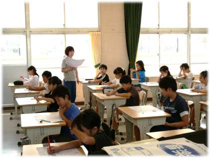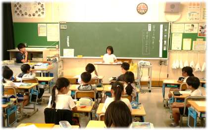 (写真上)3年1組 音楽科の授業の様子 (写真下)3年2組 国語科の授業の様子
