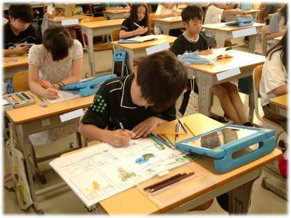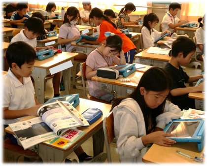 (写真上)4年1組 理科の授業の様子 (写真下)4年2組 理科の授業の様子