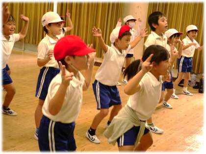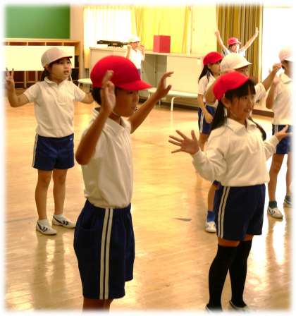 (写真中・下)2年2組、3組 体育科:運動会の表現で披露するダンスの練習が始まりました。のりのりです。