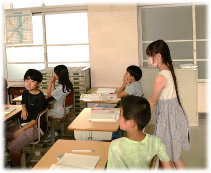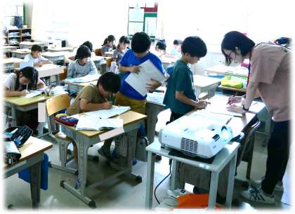4年生の算数科の学習では、現在取り組んでいる単元「小数」から、1学級を2つに分けて、少人数指導を行っています。系統的な積み上げが必要になる算数科において、よりきめ細かに一人一人の学びをサポートしていきます。