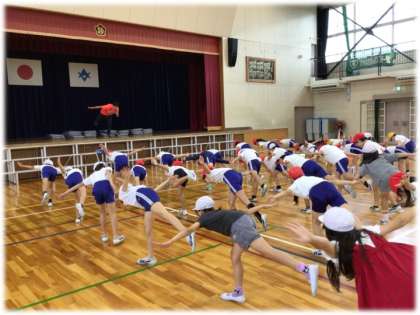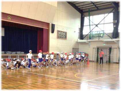 走るときの姿勢や腕の振り方などを学び、楽しみながら「走」の基本的技能を高めていきます。