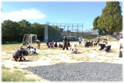 PTA活動として、運動場の草取り及びトイレ清掃を行っていただきました。保護者のみなさまのお力で、運動場のトラック周辺に生えていた雑草が抜かれ、子どもたちも気持ちよく運動会練習に臨む環境が整いました。また、日常の子どもたちのトイレ清掃では行き届かない部分を大人の手できれいにしていただき、トイレも大変きれいになりました。