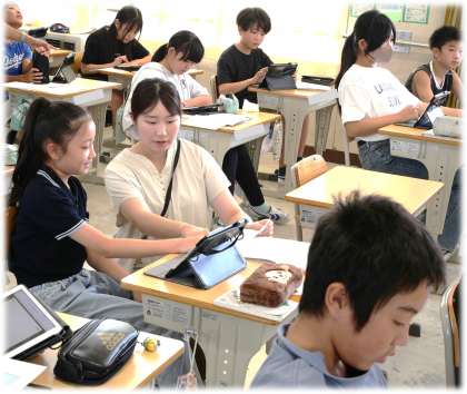 (写真上)6年1組 理科:単元「月と太陽」の学習を進めています。学んだことをもとに空を見上げると、月の見え方も変わってくるかもしれませんね。見える世界が広がる楽しさが学びにはありますね。