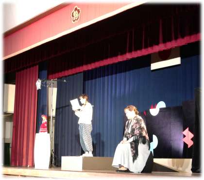 「青い目の人形」を題材にした朗読劇では、戦時下にアメリカから日本へ贈られた日米の子どもたちの友情の証である人形があったことを知り、その人形にかかわる人たちの思いにふれるお話でした。ストーリーテラーを務める演者の方を中心にわずか3名の演者の方とピアノの生演奏で進む劇。