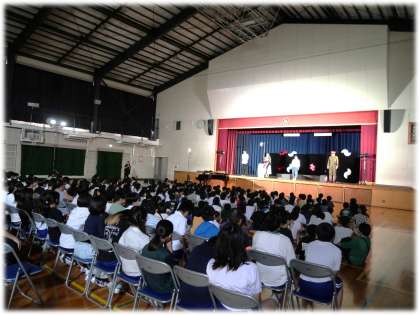 演者の方からの劇をとおしてのメッセージをしっかり受け止めている駒場っ子です。