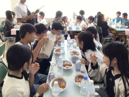 10月9日(木)6年生 みんなで作ろう!一生の思い出と学習を58 公開日 2025/10/09 更新日 2025/10/09 学校行事 修学旅行最後の食事は、カツカレーでした。歩き疲れた身体にエネルギーチャージができました。 6年生 5678組 行事