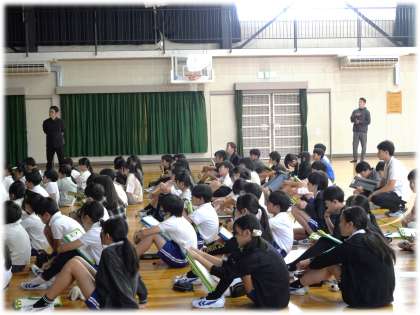 石山選手からの講話では、「目が見えなくても、僕には無限の可能性が広がっている」という熱いメッセージを語ってくださいました。その想いを受け止めながら、じっくり講話に耳を傾ける子どもたちです。