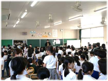 10月17日(金)教育実習生のサックスコンサート2 公開日 2025/10/17 更新日 2025/10/17 各学年から すてきな時間をつくってくれた教育実習生に感謝ですね。 コンサート終了後、机や椅子の整頓を進んで行っていた6年生がいます。その6年生の姿を見て、2年生と3年生も一緒に整頓を始めました。6年生が「いい風」をつくり、周りもその風に一緒に乗っている、すてきな光景でした。 いい風、つくっていますね。 1年生 2年生 3年生 4年生 5年生 6年生 5678組