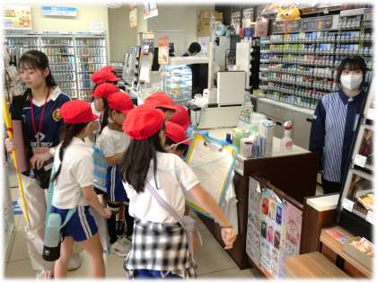 社会科の学習として、働く人たちの様子やお店の工夫を探ってこようと、学校近くにあるコンビニエンスストアへ社会科見学に出かけました。