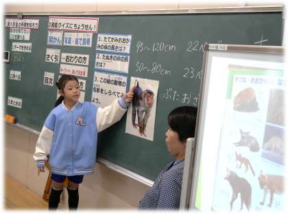 10月24日(金)2年生 図書館出前授業の様子1 公開日 2025/10/24 更新日 2025/10/24 各学年から 今日は、中央図書館から講師の先生を招いて、調べ学習名人を目指した学習を行いました。まず、調べ方の手順を知り、実際に図鑑クイズを通して、図鑑での調べ方を学んでいきます。目次の秘密、索引の秘密、奥付の意味などを知り、図鑑で調べることのおもしろさや、もっといろいろなことを調べてみたいという次への探究意欲を高めていました。 こちらは、2年1組の様子です。 2年生 5678組
