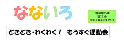 本日、1年学年通信「なないろ」第11号を発行し、お子様を通じて紙配付します。今号では、運動会の出場種目について、お子様の出番や位置などを記入していますのでご確認ください。