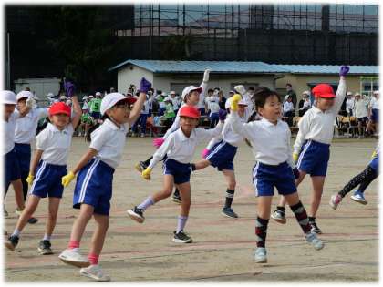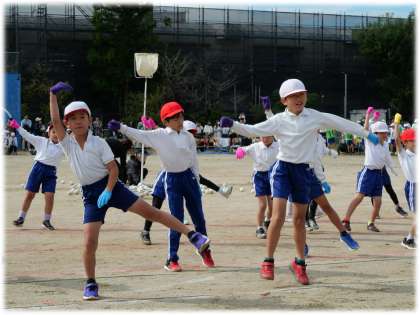 【運動会30】1・2年生 たくさん入れ!ジャンボリー玉入れ4 公開日 2025/11/05 更新日 2025/11/05 学校行事 続いて2年生を中心に。表情もつけて、観る人を楽しい気持ちに誘うダンスを披露する1・2年生です。 1年生 2年生 5678組 行事