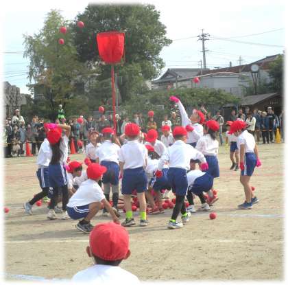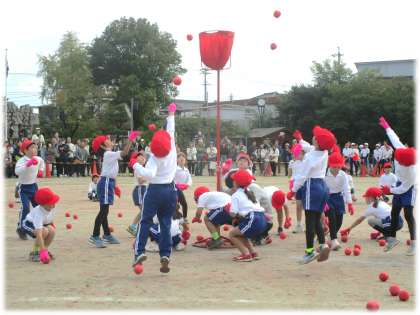 【運動会32】1・2年生 たくさん入れ!ジャンボリー玉入れ6 公開日 2025/11/05 更新日 2025/11/05 学校行事 表現に続いて、玉入れです。時間内にたくさんの玉をかごに入れようと、みんなで協力して玉を投げ入れます。 こちらは1年1組(赤組)の様子です。 1年生 2年生 5678組 行事