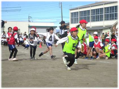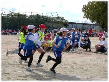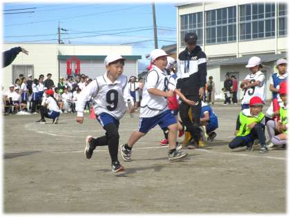 【運動会36】3・4年生リレー ゴールを目指してバトンをつなげ!1 公開日 2025/11/05 更新日 2025/11/05 学校行事 3・4年生のリレー種目です。 まずは、3年生の出番です。3年生にとっては運動会で取り組む初めてのリレーです。「しっかりバトンを渡せるかな」「バトンを落とさず受け取ることができるかな」練習では、どきどきしながらバトンパスの練習も行ってきました。本番では、自分を信じ、仲間を信じ、バトンをつないでゴールを目指しました。 3年生 4年生 5678組 行事