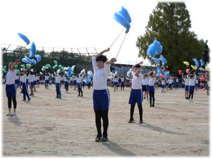 【運動会47】5・6年生表現 ライラック〜魅せろ!駒場魂!〜8 公開日 2025/11/06 更新日 2025/11/06 学校行事 6年生にとっては、最後の演技。一つ一つの動きに思いを乗せていきます。 5年生 6年生 5678組 行事